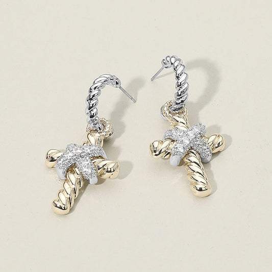 14K GOLD PLATED CUBIC ZIRCONIA CROSS EARRING