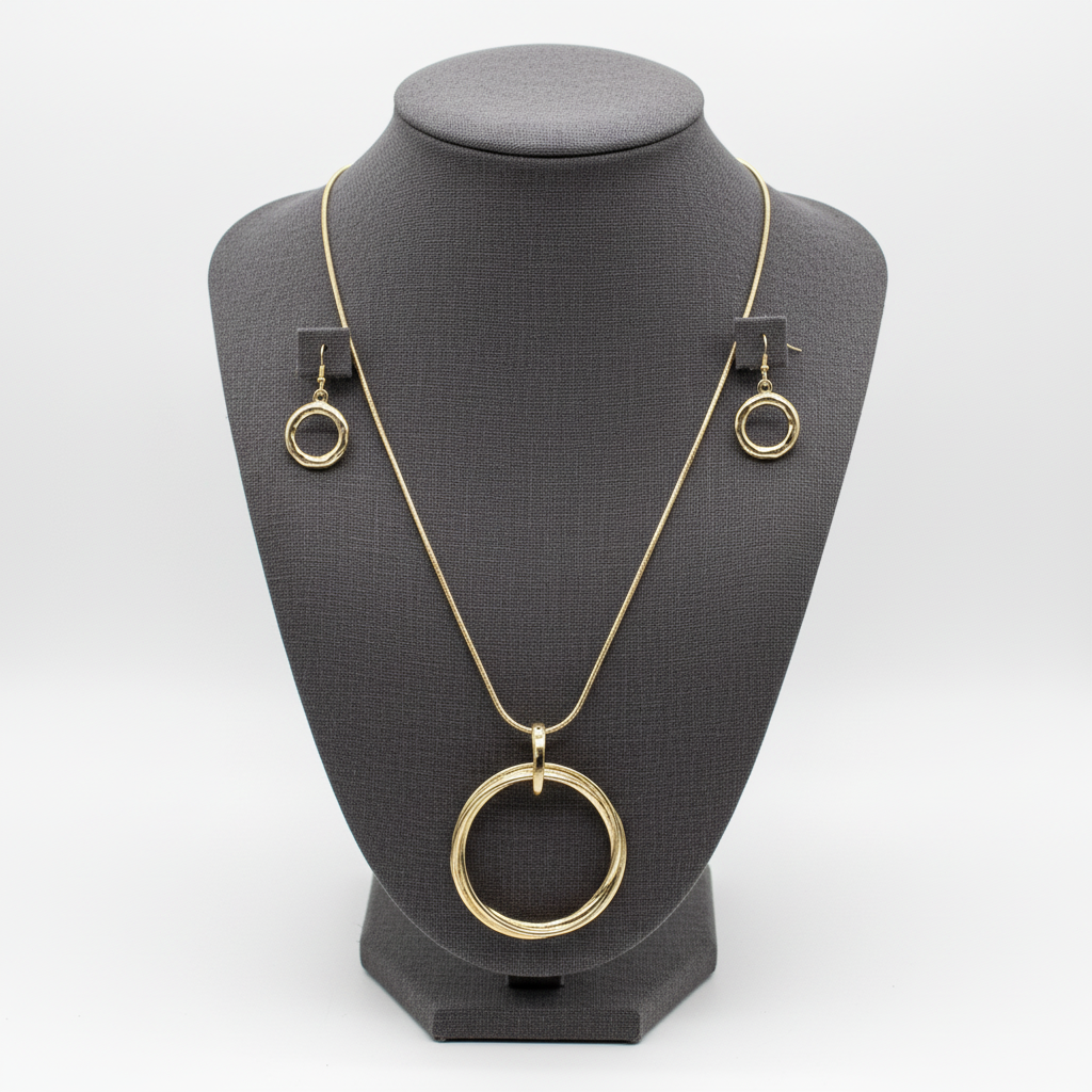 Long Circle Pendant Necklace Set